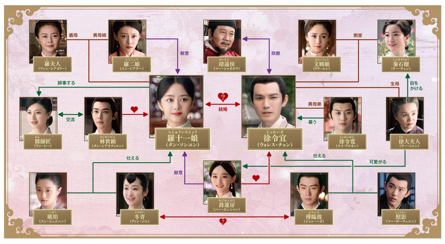 徐令宜の正妻。羅家の嫡長女。家族の利益のために徐令宜と結婚し、嫡子徐嗣諄を産む。幼馴染の徐令宜とは家族の事情で心が離れてしまう。過去の流産が原因で病気を患い、長らく治療を受けていたが、病狀が悪化。羅家と息子のため、徐令宜に側室を迎えるよう畫策する。その後、病死する。