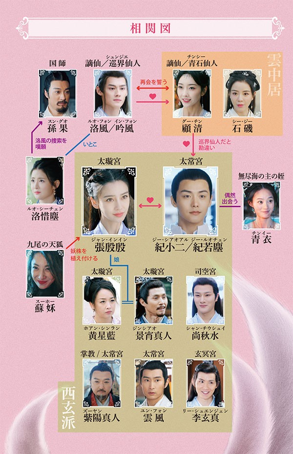 この世のものとは思えぬほど美しい仙女。元々は仙界に存在する青い石でしたが、巡界仙人(じゅんかいせんにん)と共に人間界へと落とされました。二人は百世後、共に仙術を磨き、天に昇ることを約束します。しかし、顧清は紀若塵(きじゃくじん)を転生した謫仙(たくせん)と思い込み、一目惚れ。この勘違いから生まれた戀は、やがて真実の愛へと変わり、生涯に渡る悲戀へと発展していきます。