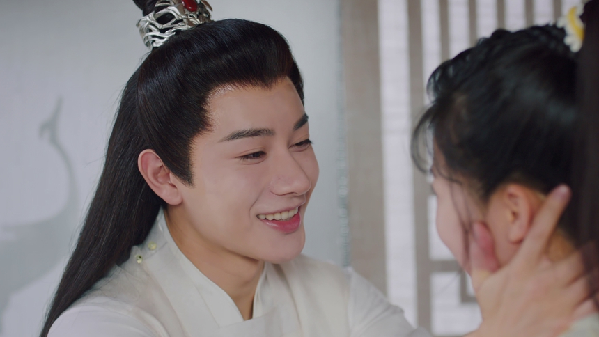 容鈺在窗外聽到了九靈的話後,不覺變了臉色,九靈送走了阿檀,轉身看到了容鈺長身玉立地站在那裡,她以為他已經好了,便驚喜地跑過去叫他少館主,但是容鈺轉身後又變成呆萌的樣子,還奇怪地問九靈為什麼這樣叫自己?九靈看到他這樣的表情,知道自己的解藥又失敗了,她抱住容鈺哭了起來,怪自己沒用,不能治好容鈺。不過她又安慰容鈺,即使他治不好,自己也會一直陪在他身邊的。九靈拉著容鈺去看星星,看到流星劃過,九靈急忙許願,說保佑容鈺永遠健康平安快樂。